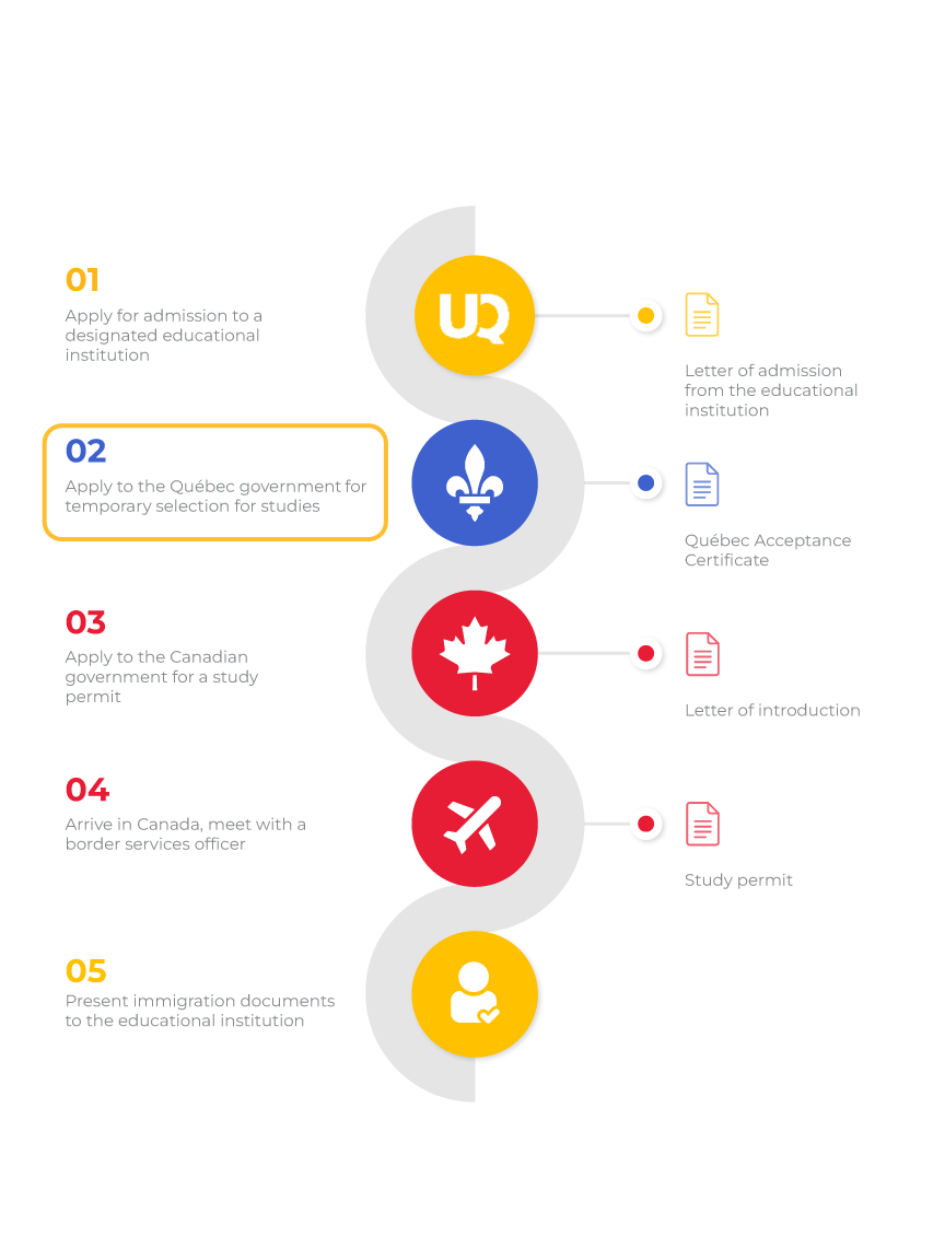 Please note that, although the ministère de l’Immigration, de la Francisation et de l’Intégration (the ministry of immigration, francization, and integration, abbreviated MIFI) website refers to both the Québec Acceptance Certificate (CAQ) for studies and the temporary selection for studies, they are in fact the same process.