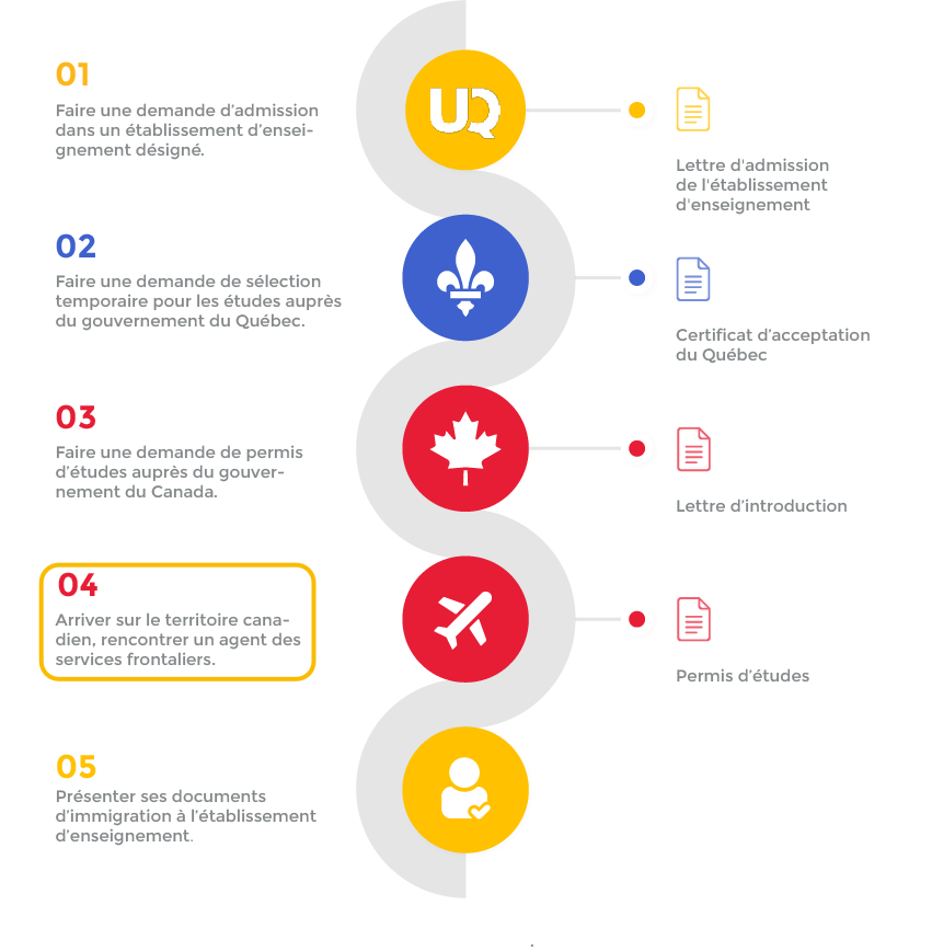 Pour savoir quelles démarches d’immigration vous devrez réaliser après votre arrivée, consultez la section Communiquer avec son établissement d’enseignement.